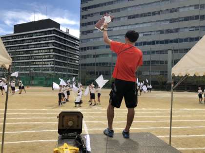 東中学校に行き、一回だけの隊形確認をしました。時間を大切に、本番を意識して練習しました。