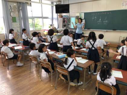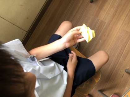算数では直角の学習をしています。不定形な紙も折り曲げることで直角を作ることができました。