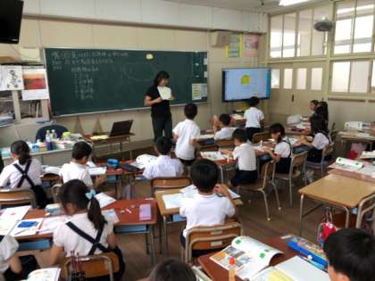 音楽では2拍子のリズムをグループに分かれて学習しています。