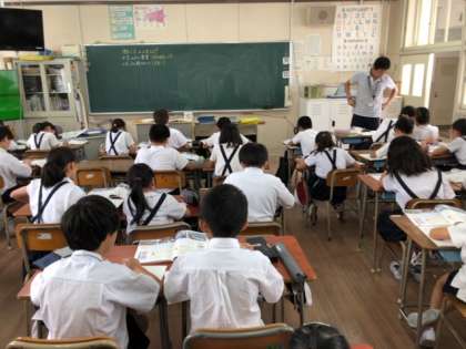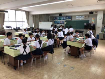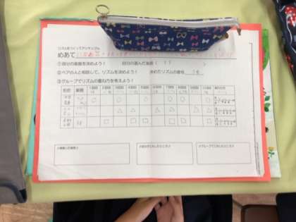 音楽では打楽器や手拍子でリズムアンサンブルの学習をしています。