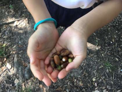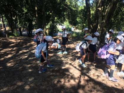 爽やかな秋晴れのなか、元気に遊んでいます。まずはどんぐり拾いをしました。