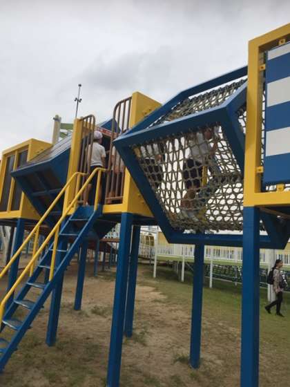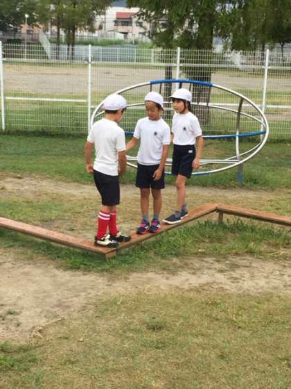 一旦雨が止んで外で遊べています。12時を過ぎたらまた雨雲が来るみたいです。屋根の下でお弁当を食べました。