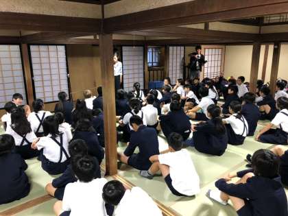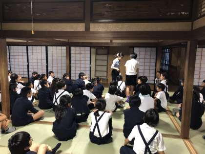宿舎の麻野館に到着しました。100年以上の歴史ある旅館です。今から開舎式です。