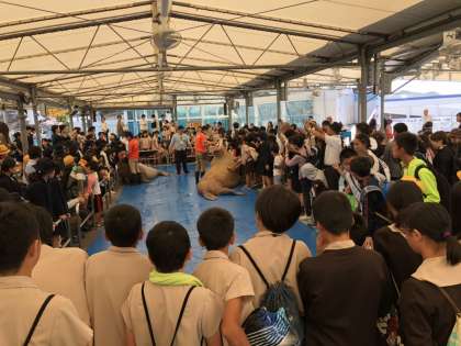 鳥羽水族館名物のセイウチ笑(ショー)です。目の前でおっきなセイウチが、おもしろかわいく芸をします。