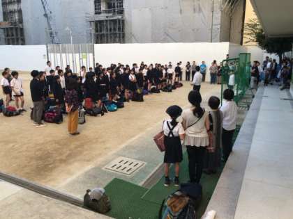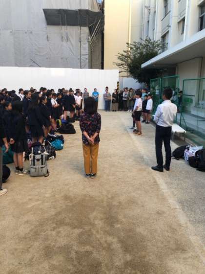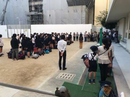 6年生が修学旅行を終え、無事帰ってきました。満足と疲れとがまじったいい顔をしています。帰校式も終え、無事帰りました。