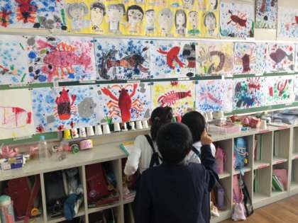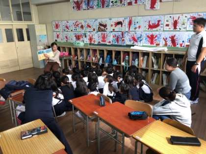 英語活動では、大阪外国語専門学校の方が英語の絵本の読み聞かせをしてくれています。