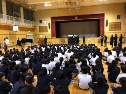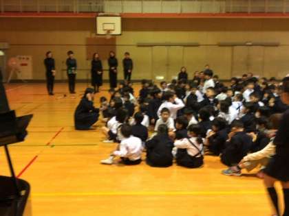 スマイルの皆さんが昨日に引き続き、「ブタの種」というお話をパネルシアター形式でしていただきました。躍動感に満ちた台詞、音楽、演出の数々で子どもたちも魅了されました。