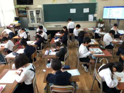 国語テストをしていました。グッと集中して取り組むことができました。