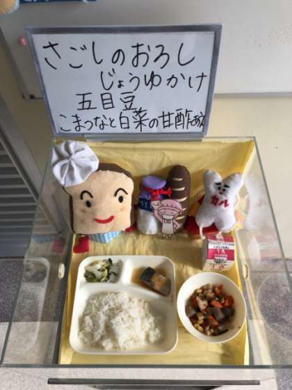 給食の時にきく組のみなさんが、先日の幼小交流ドングリ拾いのお礼にやってきてくれました。お昼から1年生は幼稚園の作品展を見に行きました。