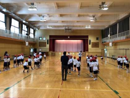 区役所からの派遣の方が、体力向上の授業をしに来てくださいました。パプリカの音楽にのせて楽しく体を動かしました。