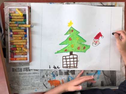 図工は、中大江公園で行われる、みんなのクリスマス使うキャンドルカバーを作りました。