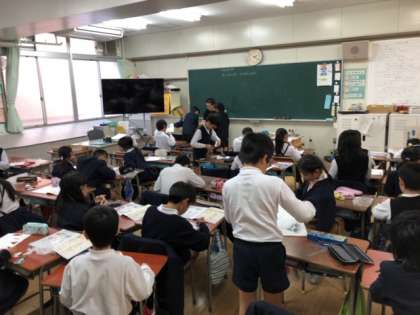 図工ではスパッタリングという技法を用いてデザインする学習をしています。