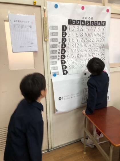 算数は九九の学習をしています。