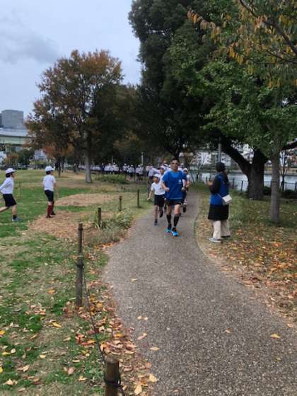 12年生が1km、34年生が2km、56年生が3km走りました。