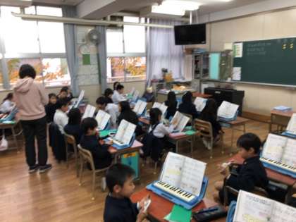 音楽は鍵盤ハーモニカのテストをしていました。