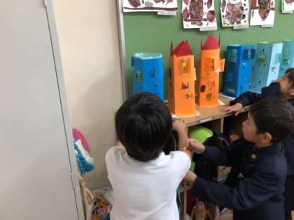 窓を開けてビルを作り、自分の好きな世界を表現しました。