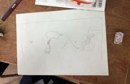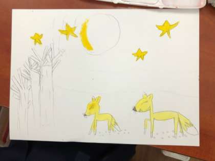 自分の好きなお話を選び、その一場面を絵に表しました。