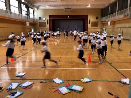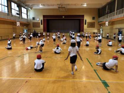 かけ足やなわとびをしました。