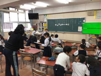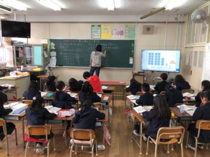 算数は、1000より大きい数の読み方と書き方について考えました。