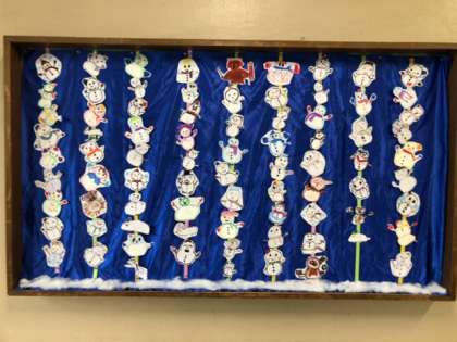 2年生の作品が出来上がり、玄関に飾られています。