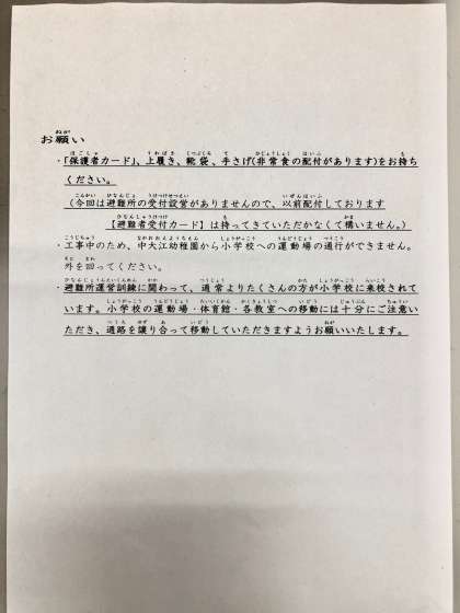 本日配付したお手紙です。