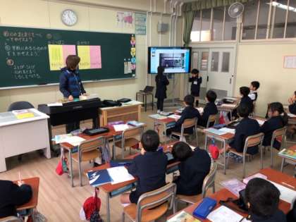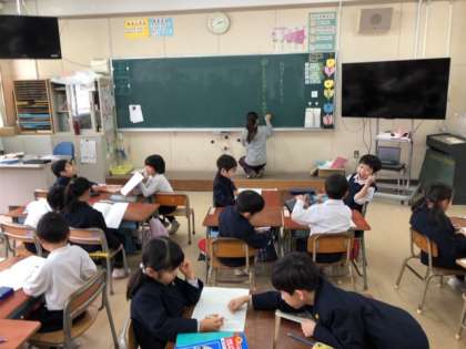 国語は、作ったお話を友だちと鑑賞し合いました。