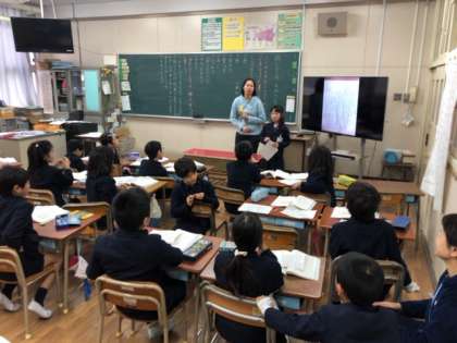 国語は、リンゴとナシのような、よく似た物の同じところと違うところについて説明しました。
