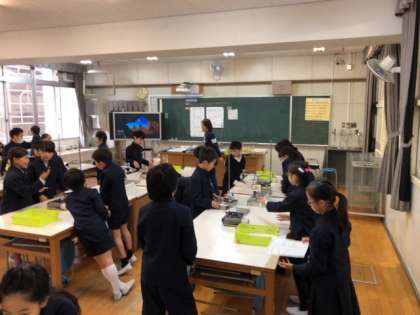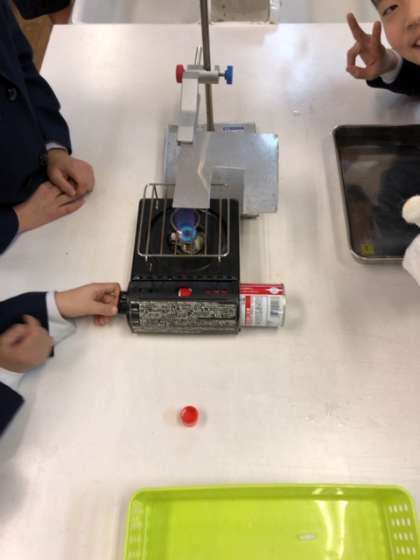 理科は、金属の熱の伝わり方について実験を通して調べました。