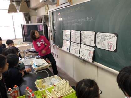 理科は、水の温まりかたについて仮説をたて、検証しました。予想とそう思う根拠について交流しました。