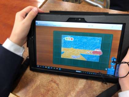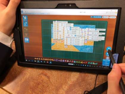 プログラミングは、プログラムブロックを組み合わせ、自分が描いた絵を思い通りに動かすよう試行錯誤をしました。