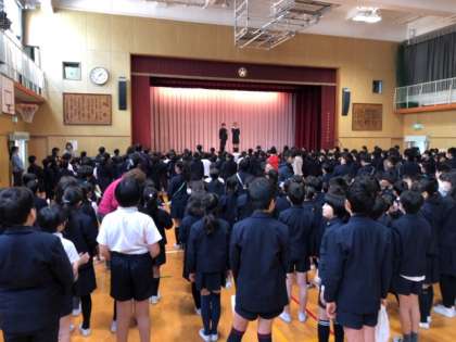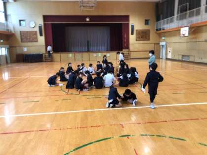 開会式のあと、縦割り班で学校のふだんしにくい場所の掃除をしました。