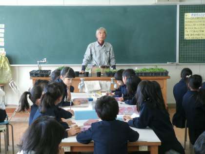 お話は化成肥料の正しい使い方など大人でも少し難しい内容でしたが、さすが草花や昆虫などの生きものが大好きな2年生だけあって、休み時間なしの2時間続きの授業でしたが、一生懸命にメモをしながら耳を傾けている子が多いのには感心しました。