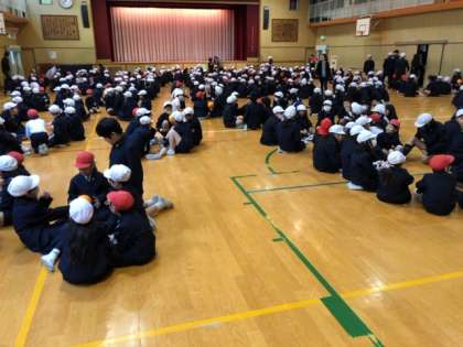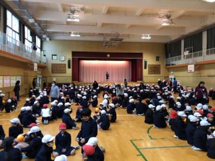 今日は集会委員によるゲーム集会でした。先週の集会が延期になってしまったので、今日は先週やるはずだったバレンタインしりとりをしました。