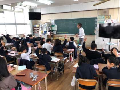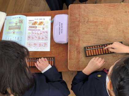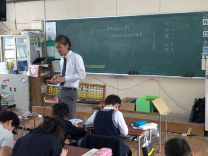 珠算協会の方にきていただき、そろばんの使い方や簡単な計算を体験しました。