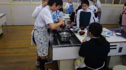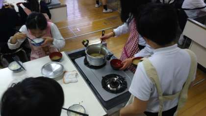 家庭は、調理実習でごはんとみそ汁をつくりました。美味しくいただきました。