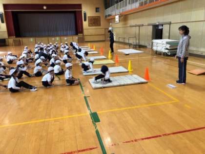 なわとびやマット運動に挑戦しました。できる技がずいぶん増えました。