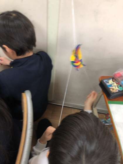 生活は、紐を交互に引っ張ると上がっていく亀のおもちゃを作りました。