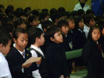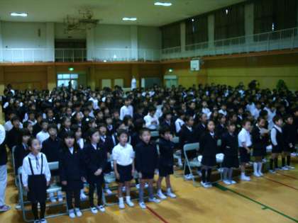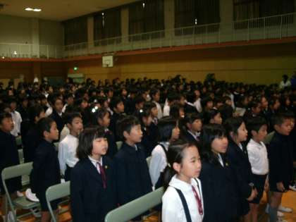 今朝の児童集会は学芸会で歌うテーマソング「ビリーブ」の合唱練習をしました。朝のすがすがしい冷気の中、子どもたちの元気な歌声が会場を包むと、寒さで縮こまっていた背筋もピンと伸び、どの子の頬にも赤みが増してきました。
