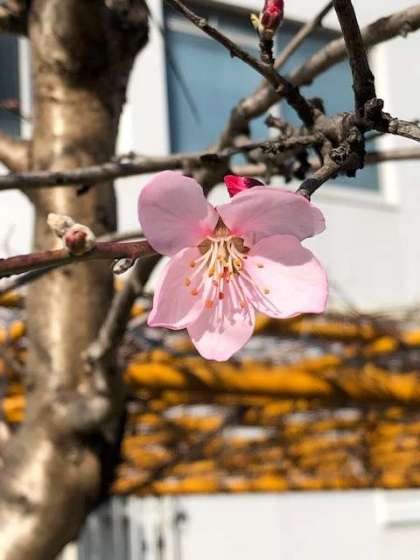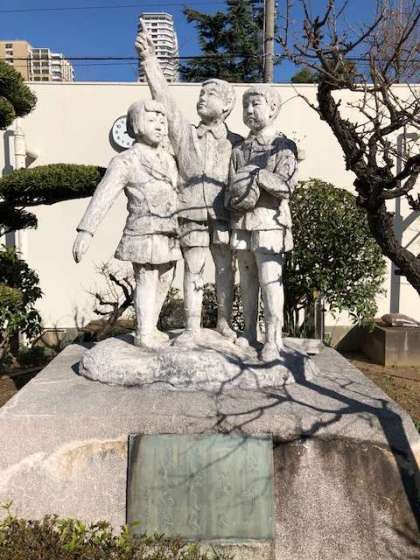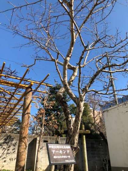 科学園では、桜より少し早くアーモンドの木が花を咲かせていました。秋にはキウイに似た実がなり、その種が私たちがよく目にするアーモンドになります。ここで、中大江雑学を一つ。このアーモンドの木は昭和36年に卒業された方々が卒業50周年を記念して寄贈してくださったのですが、科学園にある彫像もこの方々がモデルとなって造られたそうです。