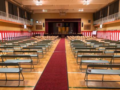 いよいよ明日は卒業式です。会場準備を整えて待っています。晴れやかな日にしましょう!!