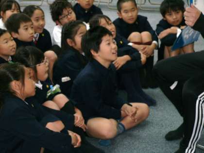 今日は3年の英語活動がありました。ボランティア講師の大阪外国語専門学校の先生や学生の皆さんも回数を重ねるたびに、子どもたちとのコミュニケーションも上手くなり、飽きさせることなくテンポよく授業が進められています。授業のほとんどすべてを英語だけで指示を出したり、説明をしたりしていますが、1学期はぽかんとしていた児童も、講師の英語の説明を理解して、笑ったり指示通り動いたりできるようになってきました。