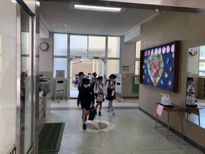今日から靴箱につながる通路が完成し、通行できるようになりました。