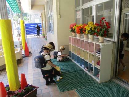 個人シールを少しずつ覚えてきたようで、毎日靴箱を覗いています。自分の靴箱を見つけると「ここ!ここ!」と嬉しそうに教えてくれます。