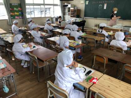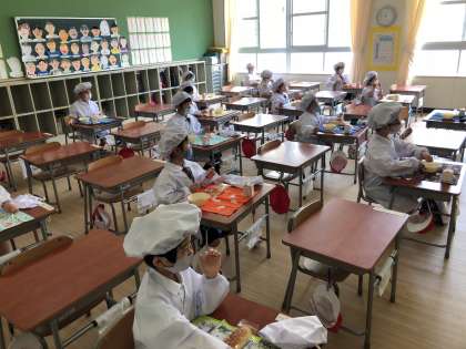1年生、初めての給食