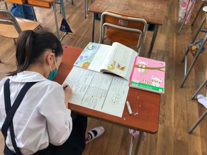 教科書をしっかり読んで、ワークシートを完成させていました。