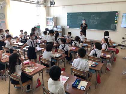1年生の算数の様子です。右から○番目、前から○番目はだれでしょう?