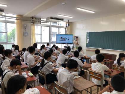 6年生の外国語の学習です。Bryan先生の英語での「どんなスポーツが得意?」との問いに、それぞれの得意スポーツを答えていました。