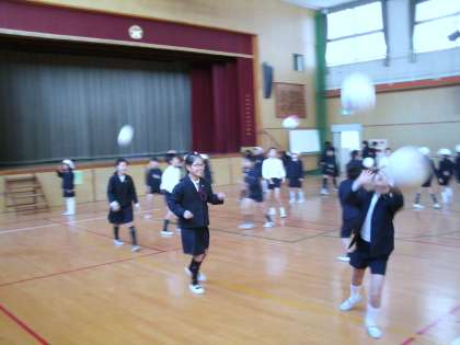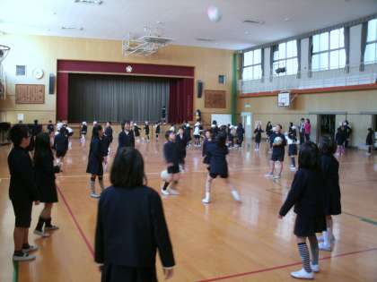 学校でも、今週はスボーツチャレンジ週間として、午前中の休み時間にソフトバレーボールやタグラグビーボールなどを使って誰でも楽しく遊べるようにしています。講堂では、ソフトバレーボールを使って慣れないながらも楽しそうにボールを追いかける子どもたちの熱気にあふれていて見ている方が暑くなるほどでした。