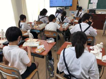 6年生の図工の時間のようすです。自分の活躍しているようすの像が完成に近づいています。細かいパーツを組み立てたり、ていねいに色を塗り始めたりしていました。