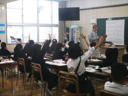普段の授業の中で「はーい!」と元気よく手が挙がる光景は高学年では大変珍しいでしょう。しかし、クラスを分割する国語や算数での少人数授業においてはお互いの関係がより親密になるのか、手を挙げることへの抵抗感が薄れ、発表への意欲が増すようです。